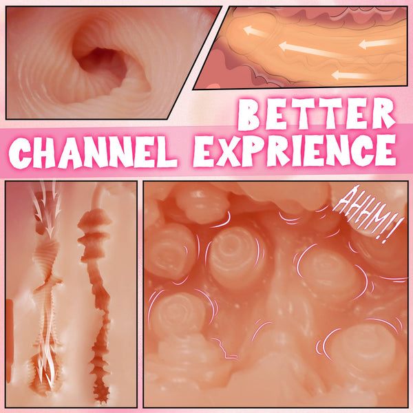 Designed with dual channels – vaginal 10cm + anal 11cm – Molly offers a full spectrum of exploration. The curved passages are lined with textured ridges and bumps that create a realistic, stimulating sensation with every thrust.